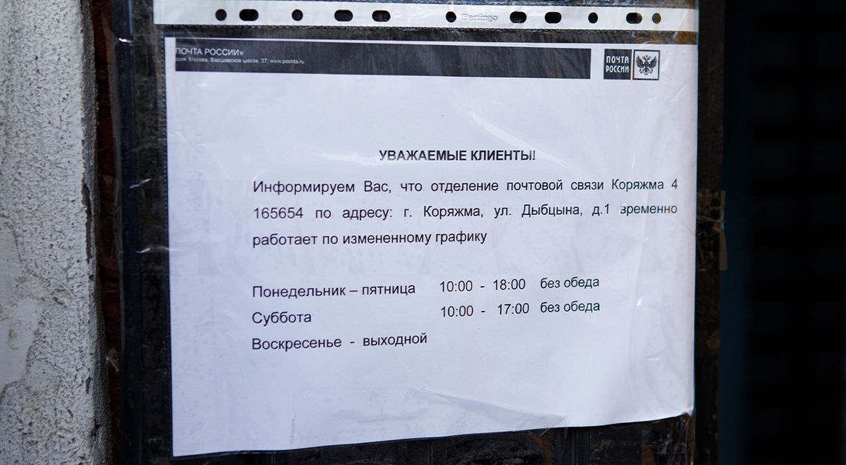 Как сообщила kor24 начальник Котласского почтамта Елена Стрельникова, штат сотрудников в почтовых отделениях Коряжмы остается неполным – остаются вакантными должности начальника и заместителя начальника отделений на Дыбцына, 1 и Пушкина, 8. В связи с этим почта в центре города, на Дыбцына, 1 временно работает по измененному графику: