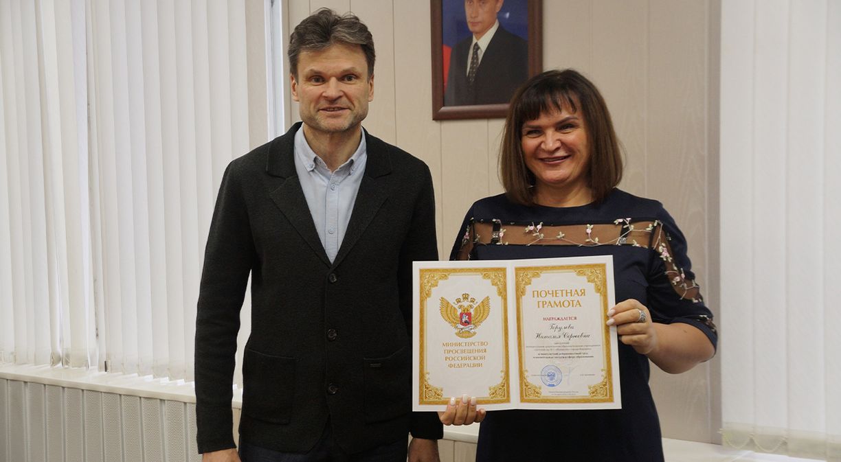 В конце декабря на заключительном совещании руководителей дошкольных образовательных учреждений заместитель главы по социальным вопросам Андрей Иванов вручил Почетные грамоты Министерства просвещения Российской Федерации за многолетний добросовестный труд и значительные заслуги в сфере образования заведующим детского сада №5 «Журавлик» Наталье Горулевой и детского сада № 8 «Колосок» Любови Дьячковой.