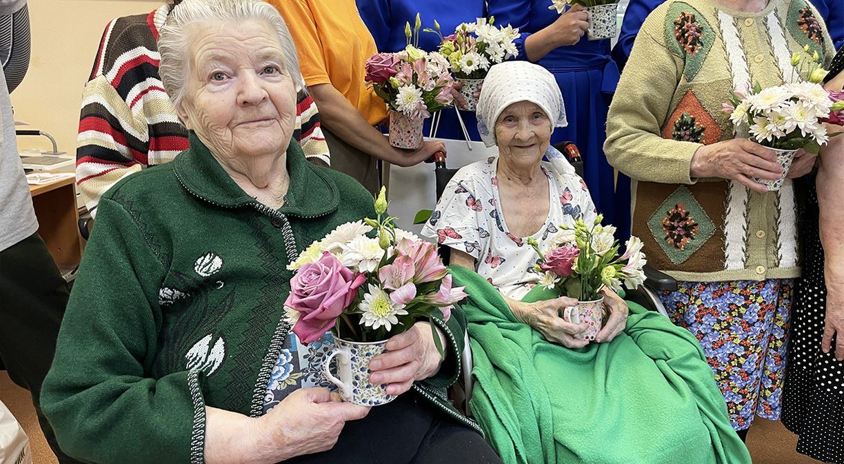 «Каждый год на большие праздники мы приходим сюда с поздравлениями. Видим, как люди радуются нам. У них слёзы и улыбки счастья, значит, для них важно наше внимание. Нам тоже приятно, что нас ждут», – рассказала Александра Маршалова, доброволец-спасатель филиала «Группы Илим» в Коряжме.