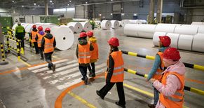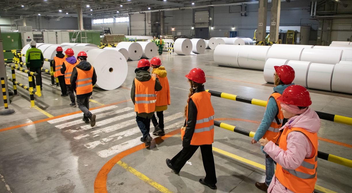 По пути на производство офисных и офсетных бумаг ребятам рассказали интересные факты о коряжемском комбинате. Он самый крупный в Европе. Для сотрудников созданы безопасные, комфортные условия труда. ЦБК ушел от хлорной отбелки целлюлозы на более экологичную – кислородную. Вообще вопросы экологии в приоритете у компании, постоянно внедряются проекты, направленные на охрану окружающей среды. Еще Коряжма – единственный в России поставщик глянцевой мелованной бумаги. Процесс ее рождения, а также офисной и офсетной бумаги бренда «Илим» показал старший технолог производства Владимир Стенин. Впечатлений у ребят – море!