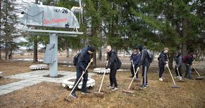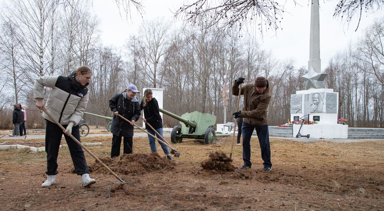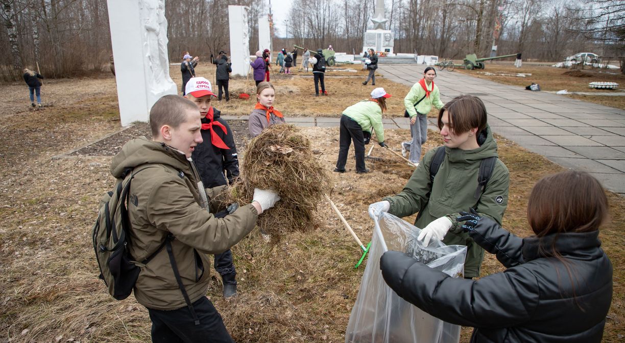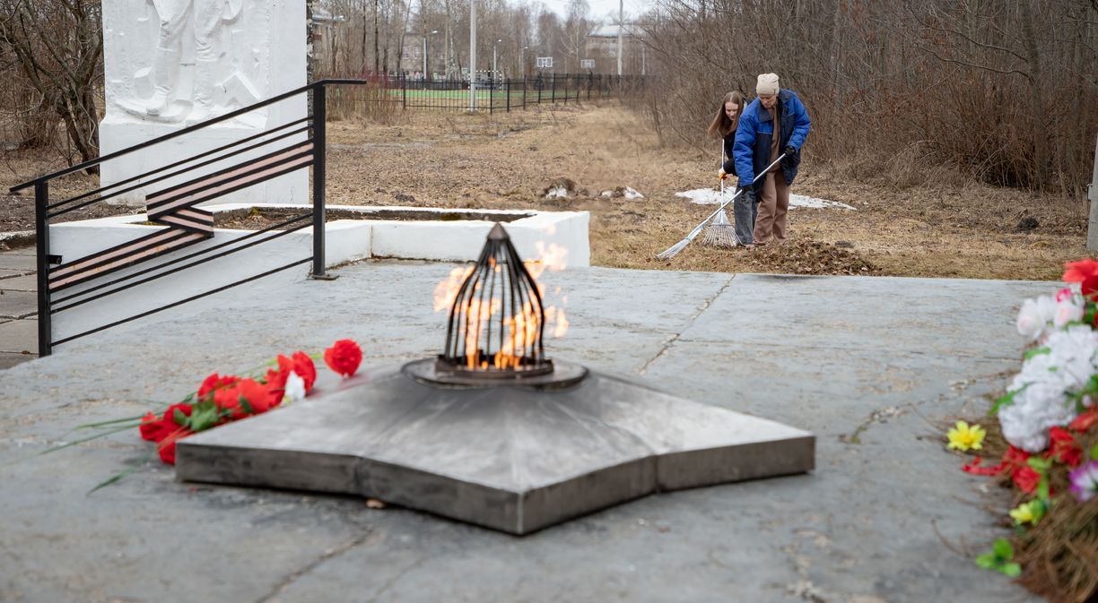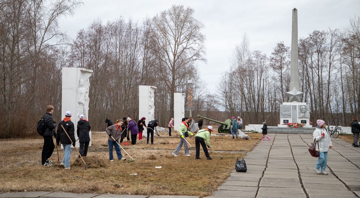 . Задача: подготовить территорию обелиска к празднованию Дня Победы – собрать мусор и прошлогоднюю листву.