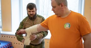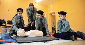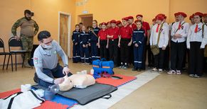 «По легенде, в ДТП пострадал пешеход, он лежит на тротуаре и не подает признаков жизни, у водителя – рана на плече, идет сильное кровотечение. Ребята учились накладывать жгут, делали непрямой массаж сердца и искусственное дыхание. Основы сердечно-легочной реанимации выполняли на манекене. В целом, ребята справились неплохо», – прокомментировал доброволец-спасатель комбината Николай Плотников.