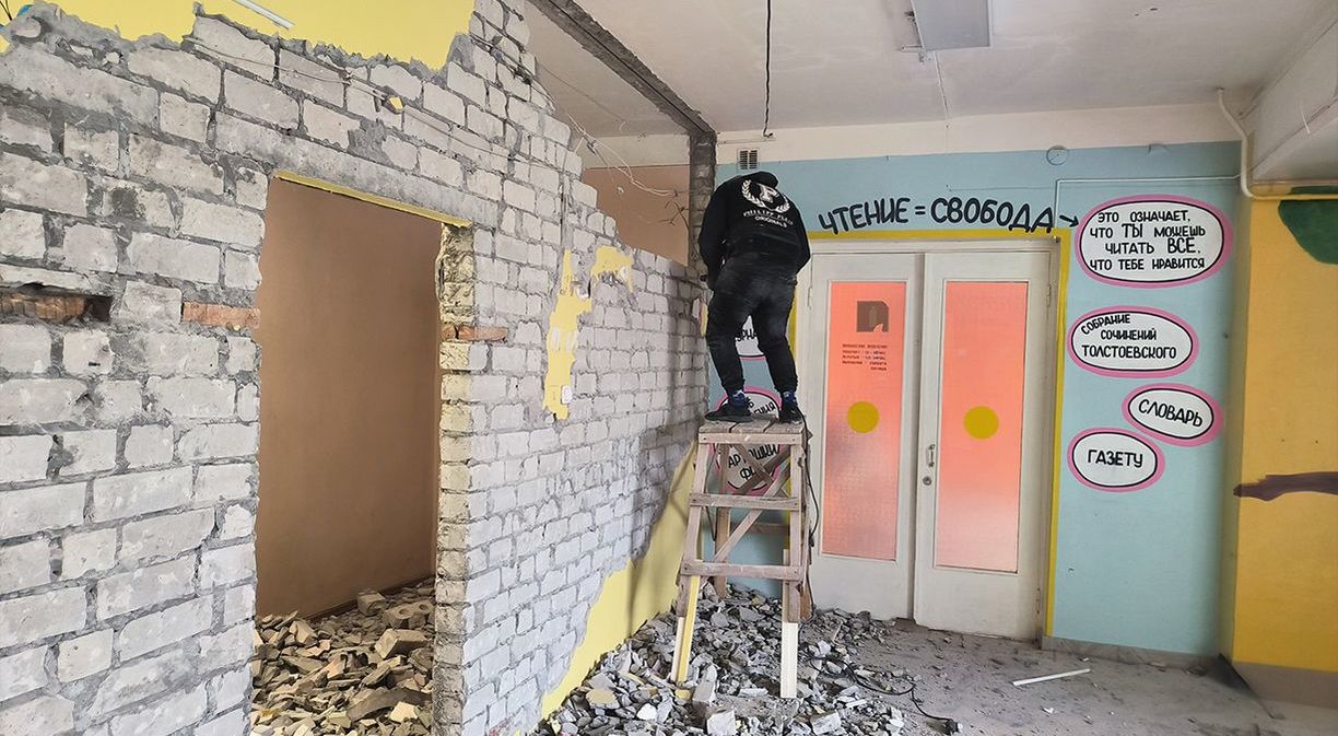 Центральная детско-юношеская библиотека сегодня больше похожа на строительную площадку. Самые заметные изменения – в фойе учреждения: рабочие производят разборку одной из стен. Причин для волнений нет – перепланировка согласована и предусмотрена проектом.