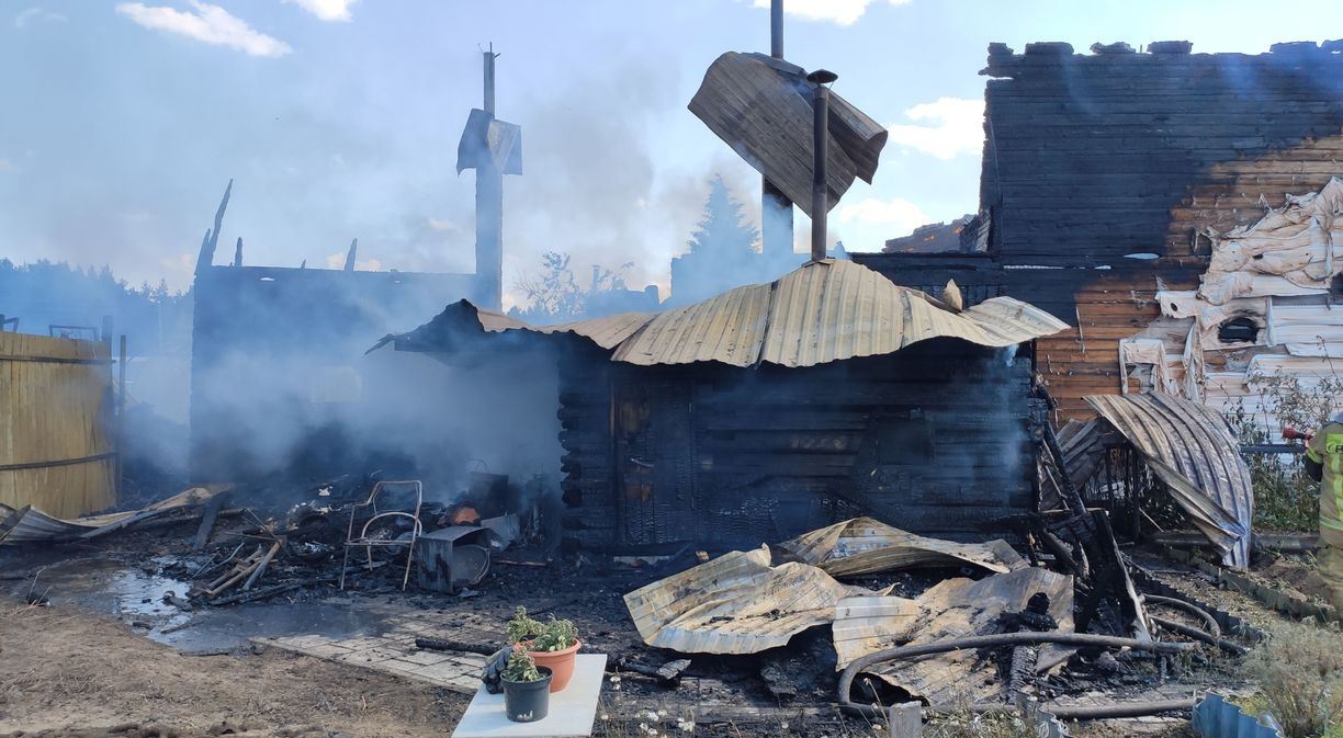 От пожара пострадали и соседние к очагу возгорания участки. Сгорели бани, хозяйственные постройки, оплавились теплицы, уничтожен урожай.