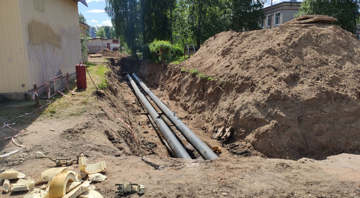 Самые глобальные ремонтные работы на теплосети проводятся на проспекте Ломоносова у дома 5В. Там замене подлежал 300-метровый участок трубопровода. Ремонтом данного участка занимается котласская подрядная организация «Авилон-норд».