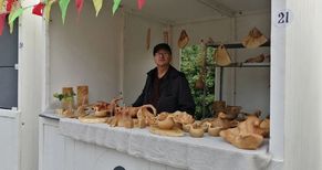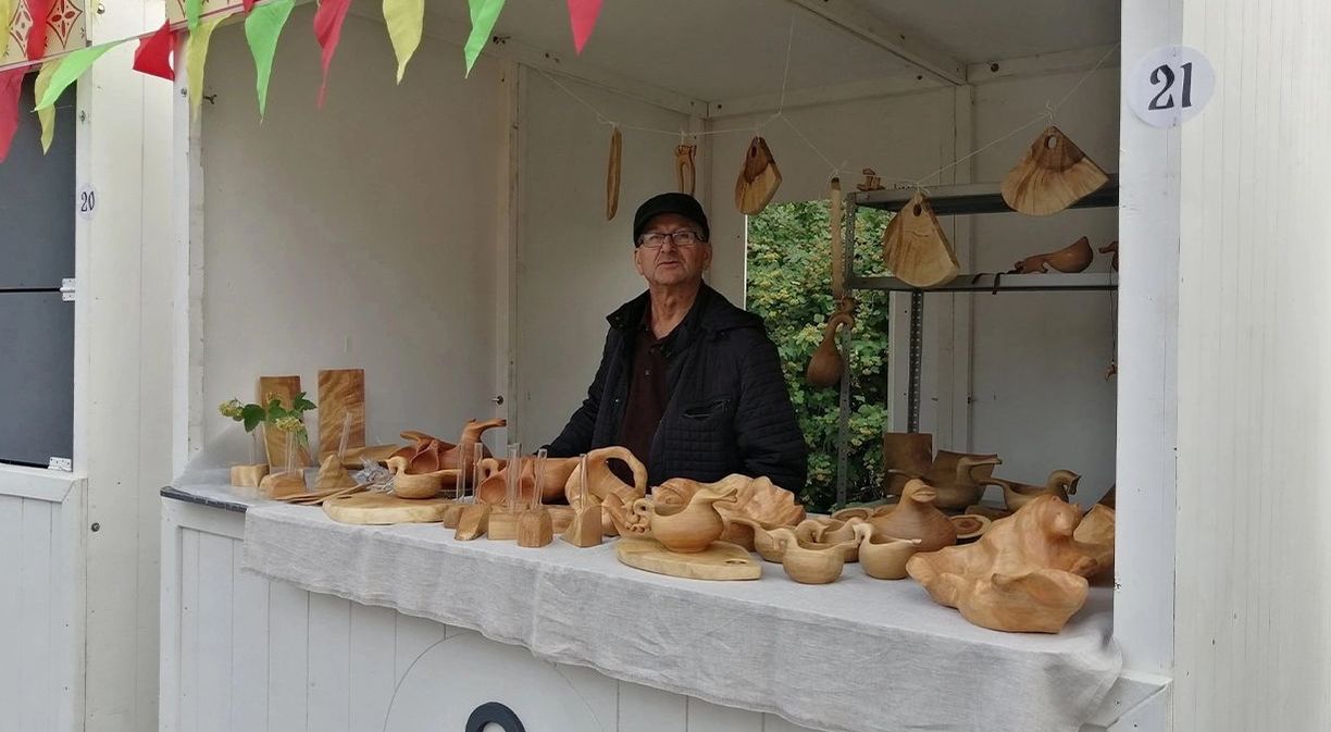 Представлена Коряжма и на ярмарке мастеров в Петровском парке. Восхитительные работы в технике объемной резьбы по дереву презентует народный мастер Архангельской области Владимир Бебяков.