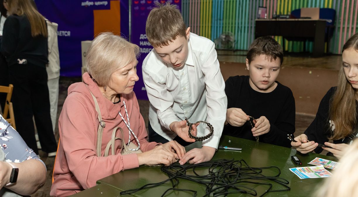 «Такие браслеты наши защитники носят на руке, в сложной ситуации их можно расплести одним движением и использовать, допустим, в качестве жгута для перевязки раны», – рассказал волонтер второй школы Владимир Ярыгин. На мастер-классе он впервые выступил в роли наставника.