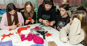 «Нашу обережную куколку мы мастерим в традиционной народной технике, у женщины в руках – мешочек счастья. А в нем – семь семечек, каждое из которых с добрым пожеланием маме», – рассказала волонтёр, педагог седьмой школы Юлия Никитенко.