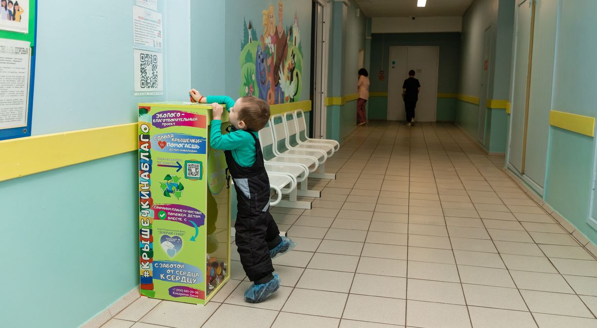 В муниципалитетах Архангельской области появляются специализированные боксы для сбора пластиковых крышек. Теперь в этом списке есть и Коряжма. Первую красочную тумбу с логотипом проекта «Крышечки на благо» установили в помещении детской поликлиники.
