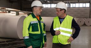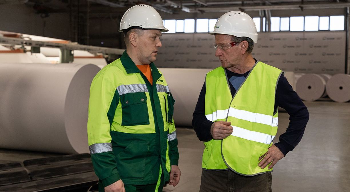 Во время экскурсии ветераны побывали на производстве офисной и офсетной бумаги. Увидели, как работают БДМ-7, автономная меловальная установка, листорезы и упаковочные линии – в цехе листовых бумаг. Подробности о системах управления на ПОиОБ прокомментировал руководитель группы Евгений Головин.