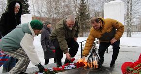 В знак уважения и благодарности героям Отечества участники памятного мероприятия возложили цветы к Вечному огню.