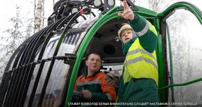 Александр Шаньгин очень внимательно слушает инструктора, опытного оператора Николая Гладких. Через несколько минут стажер садится за пульт управления харвестером и заезжает в делянку. Его задача — внимательно, без спешки выбрать нужные деревья, аккуратно их спилить, раскряжевать и согласно технологии разложить балансы по сторонам. Здесь важно, чтобы древесина лежала по сортам и была доступна форвардеру для вывозки на верхний склад.