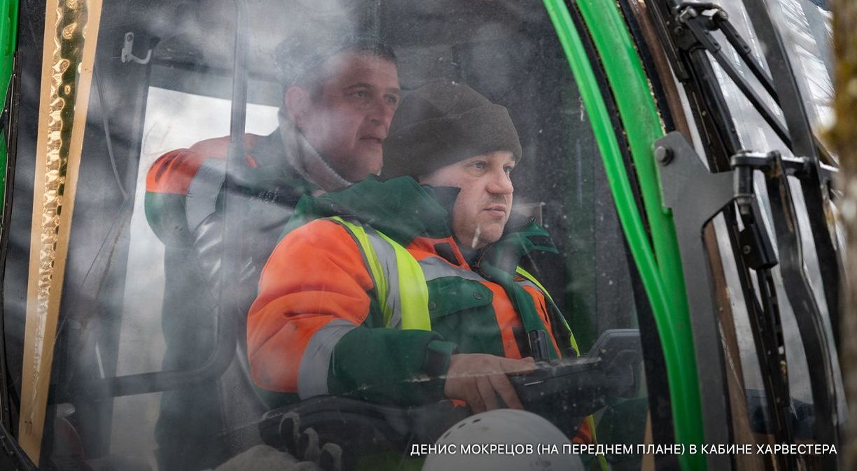 Стажеры живут вахтой, но работают пока только в день в учебной делянке. Им специально выделили для стажировок харвестер и форвардер. Стажеров курируют ведущий специалист группы спецподготовки Сергей Горобец и инструктор по подготовке операторов ЛЗК Николай Гладких.