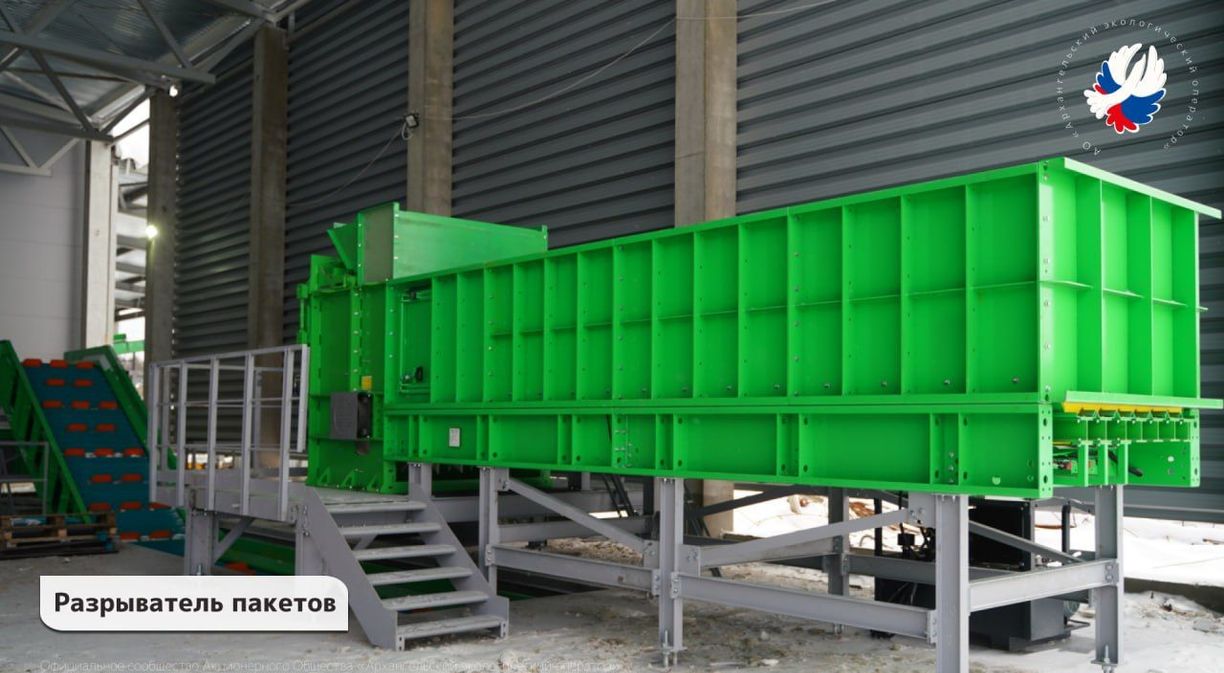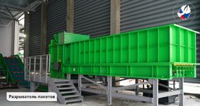 - Основная масса отходов попадет в бункер разрывателя пакетов, который необходим для создания равномерного слоя ТКО (чтобы удобнее и эффективнее была сортировка).