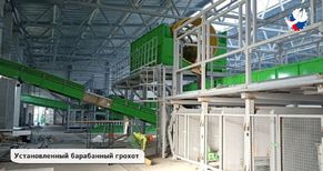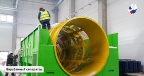 - С сортировочного конвейера материал попадет в барабанный сепаратор, где ТКО поделят на две фракции. Эта работа автоматизирована, оборудование по принципу сита разделяет поток на органическую фракцию, которая перемещается в цех компостирования, и прочие отходы.