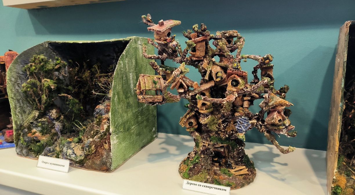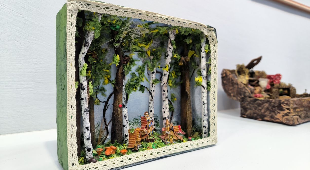 Надежда Алексеевна – врач по образованию и мама двоих детей. Творческая жилка у нее проявилась еще в раннем детстве – уж очень любила лепить из пластилина, рисовать, мастерить различные поделки. Сегодня в ее волшебном сундуке есть и уютные домики с необычными жителями и цветущими садами, и целые сюжетные линии к сказкам и картинам. В каждой работе – сердечное тепло и душа мастера. Такие экспонаты хочется разглядывать бесконечно.