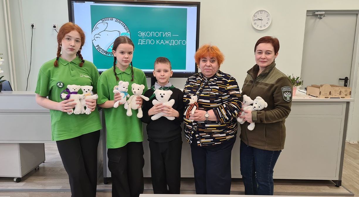 Эколята пообещали посадить семена и ухаживать за саженцами. В ответ на подарки школьники передали представителям регионального управления Росприроднадзора мягкие игрушки в виде символа международной премии «Экология – дело каждого». Белых медведей ребята шили своими руками в рамках акции, объявленной к 80-летию Великой Победы «Игрушка ветерану».
