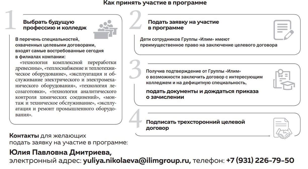 В 2024 году Группа «Илим» ввела новую для себя практику: заключение договоров со студентами, обучающимися по профильным для компании специальностям.