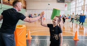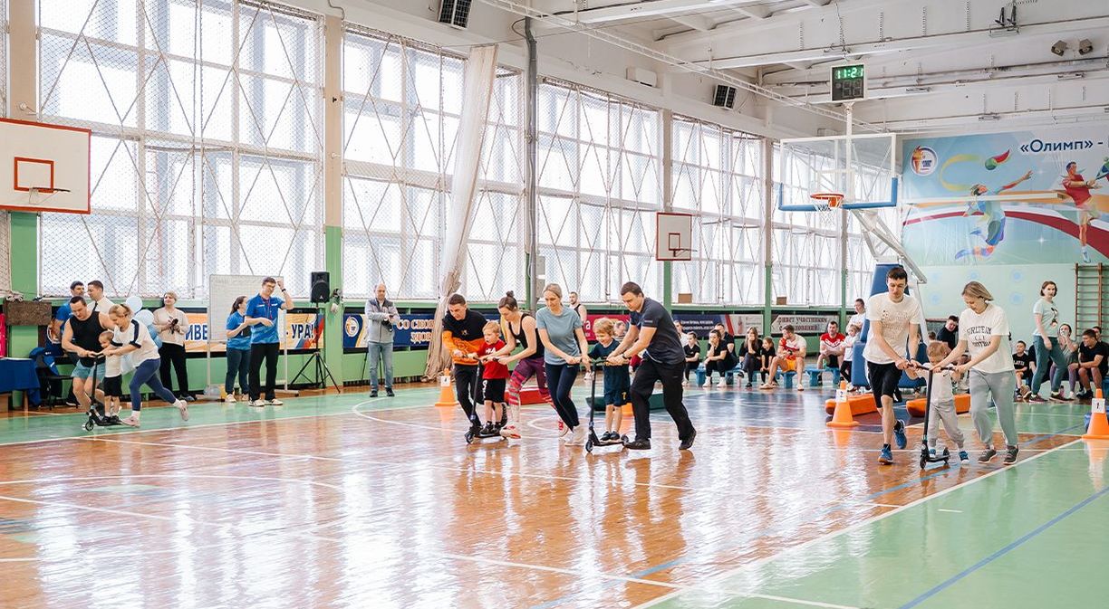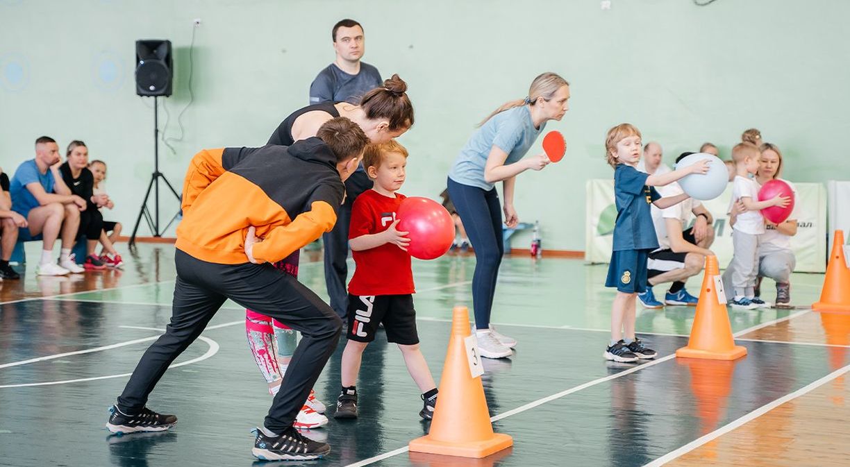 В зале «Олимпа» витал дух соперничества и адреналина. Организаторы приготовили насыщенную программу, которая включала шесть непростых эстафет. На старт вышли семьи с детьми в возрасте от 5 до 13 лет. Дружно, с азартом участники команд демонстрировали слаженную работу и отличную спортивную подготовку. Родители и дети бегали с мячом через туннель, преодолевали полосу препятствий на самокатах и лыжах, превращались в «Конька-горбунка».