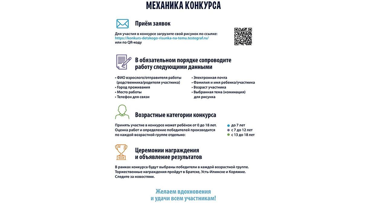 В этом году изменился механизм подачи рисунков: для участия в конкурсе готовые работы необходимо загрузить по ссылке. В обязательном порядке нужно сопроводить рисунок данными – фамилия, имя и год рождения автора, также написать информацию о родителе и номер телефона для связи.