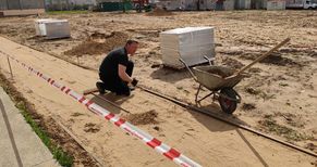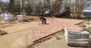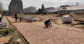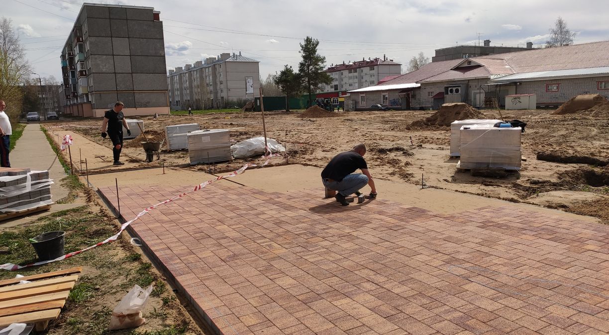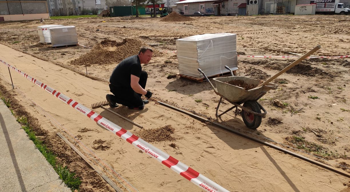 «Провели подготовительные работы: выбрали грунт, уложили геотекстиль, засыпали песок и щебень. Занимаемся разметкой территории, начинаем укладку плитки, она завезена в нужном количестве», – сказал генеральный директор подрядной организации Алексей Чебыкин.