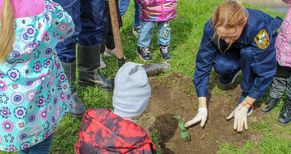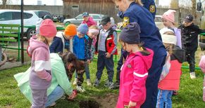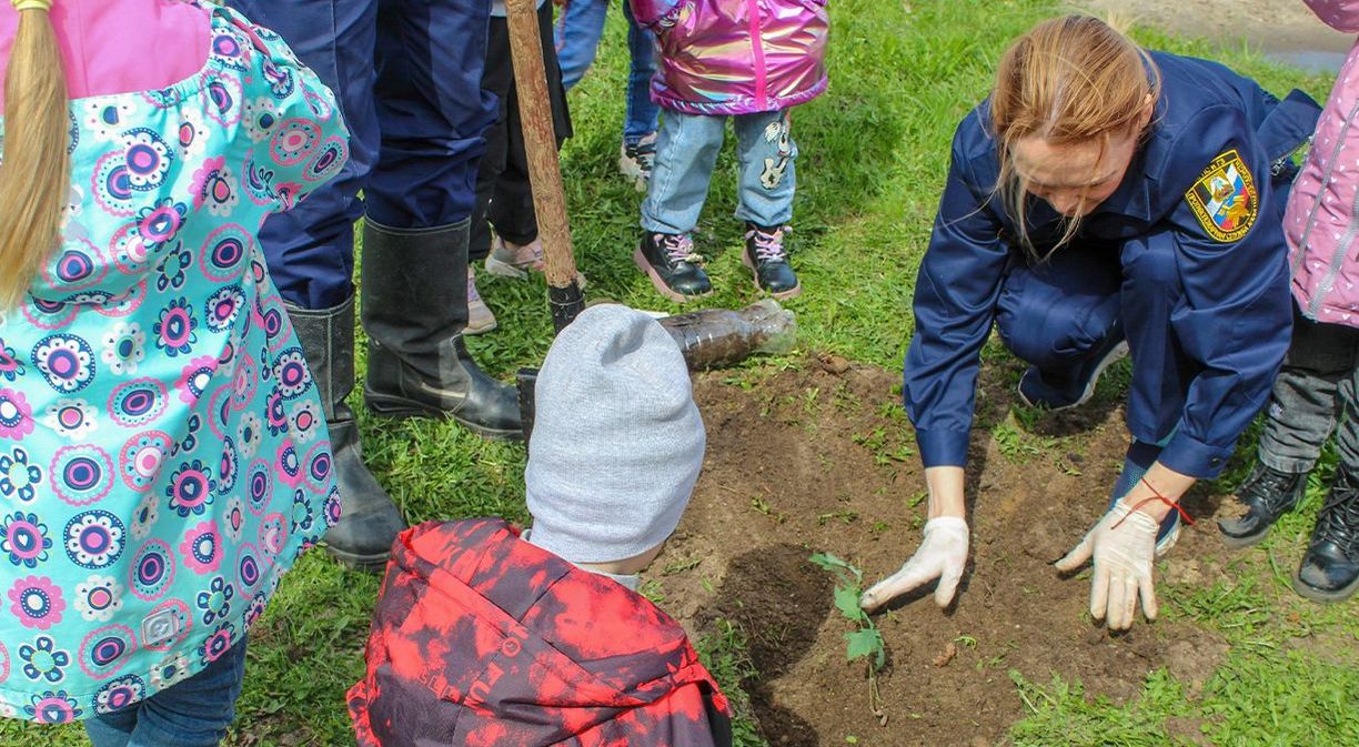 После экскурсии по пожарной части дети вместе со взрослыми посадили деревца на территории подразделения. Акцию посвятили 80-летию Победы. Два дубка, яблонька и ясень стали символами памяти о подвиге героев Великой Отечественной войны.