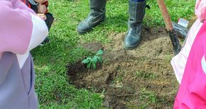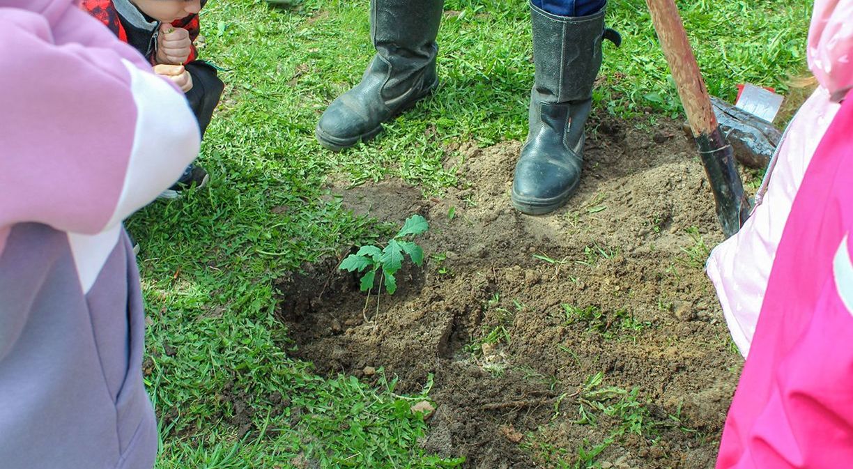 Дошколята привезли особенный подарок – саженцы дуба, яблони и ясеня, которые целый год выращивали в своей группе из семян и желудей.