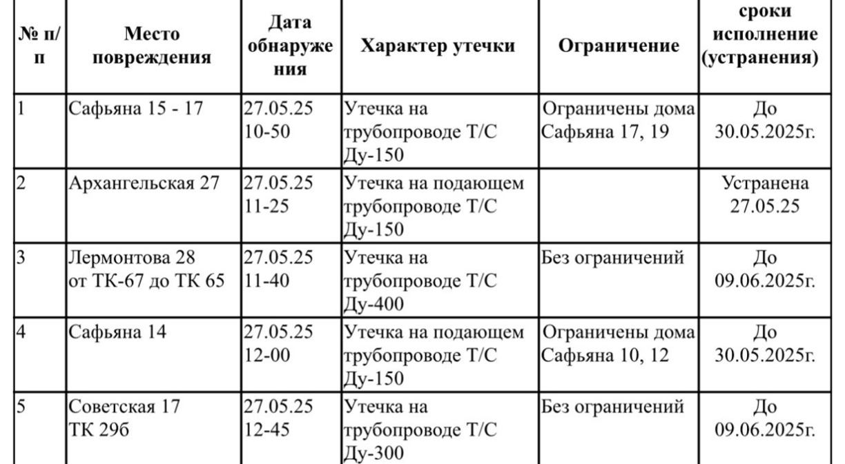 В ходе гидравлических испытаний было выявлено пять протечек – на ул. Архангельская, Сафьяна, Лермонтова и Советская. В результате часть домов осталась без горячего водоснабжения. Одна из протечек – на Архангельской, 27 – устранена оперативно. Остальные также будут ликвидированы. График устранения повреждений опубликовало ПУ ЖКХ.