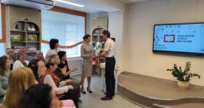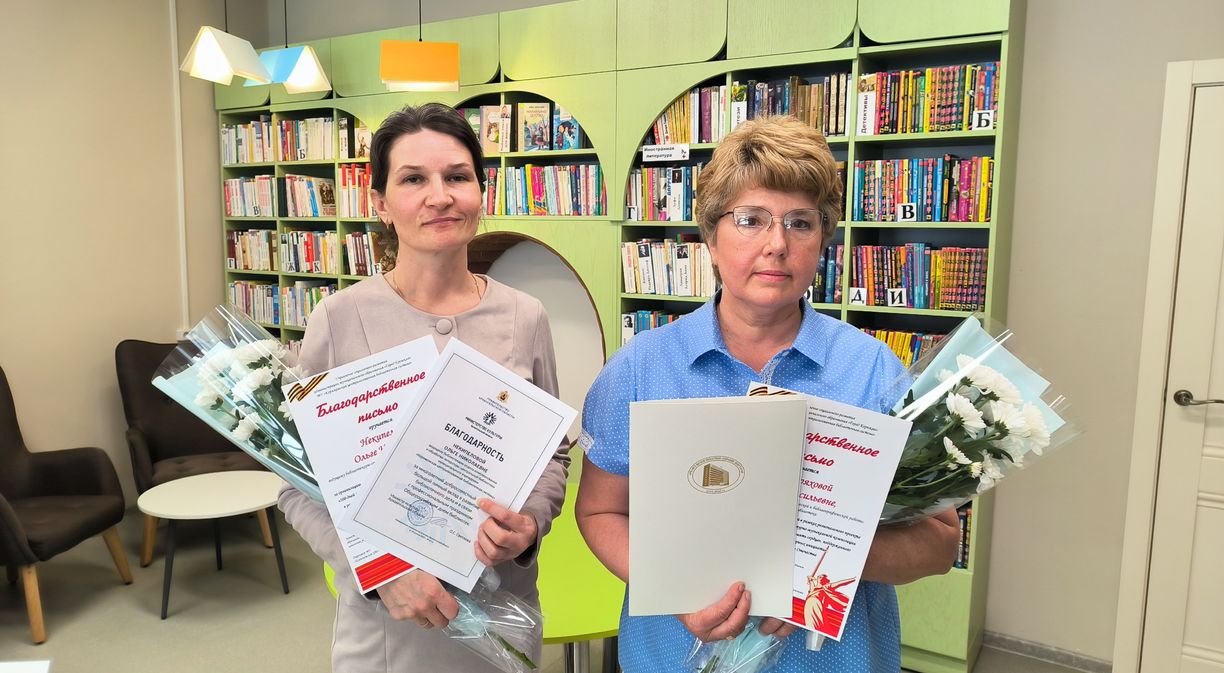 Торжественный момент праздничного мероприятия – поздравления от управления социального развития администрации города и вручение наград, в том числе областного уровня. За преданность делу, любовь к книгам, большой вклад сохраняете культурное наследие и помогаете людям развиваться. Благодарность Министерства культуры Архангельской области вручена ведущему библиотекарю отдела комплектования и обработки литературы Ольге Некипеловой. Почетной грамоты областного Собрания депутатов удостоена ведущий библиограф Ольга Котряхова. Обе в профессии по призванию, работают в центральной библиотеке уже более 20 лет.