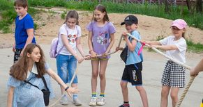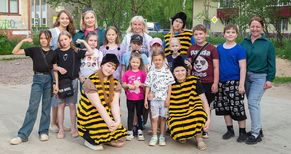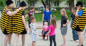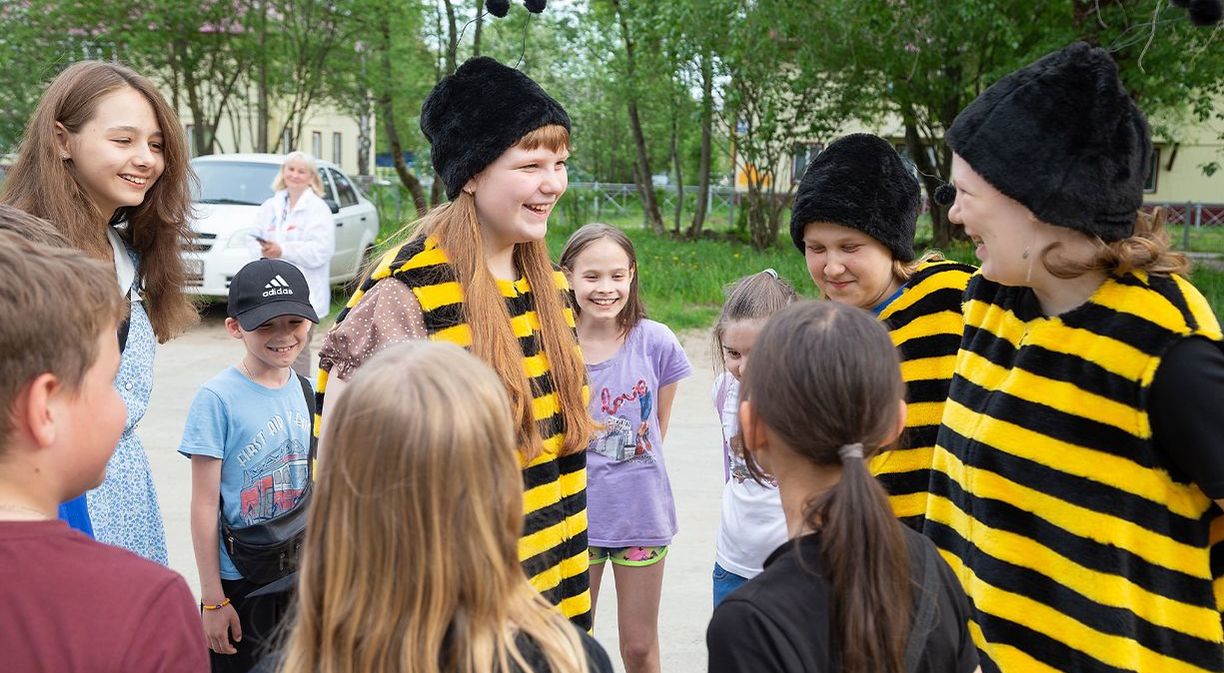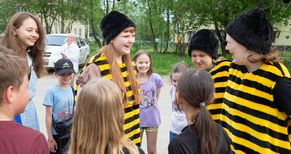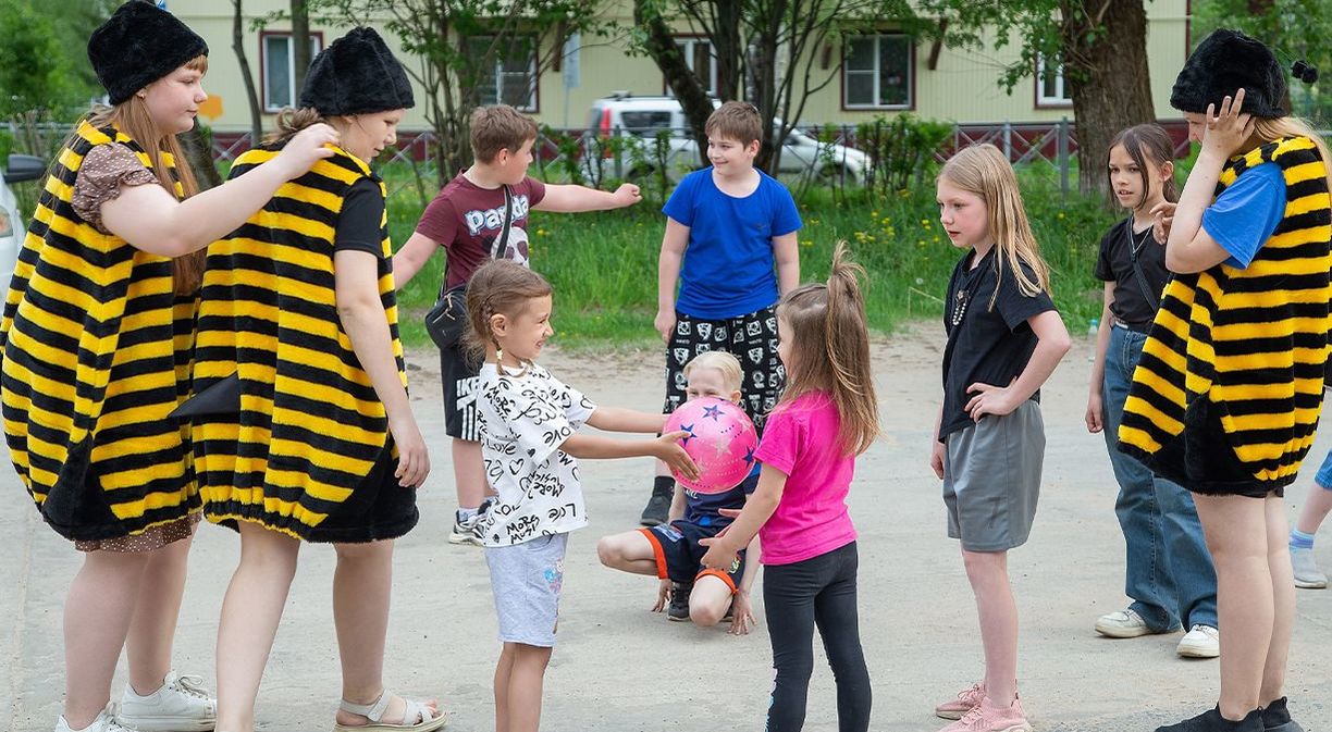 Например, на дворовой территории у дома 10 по улице Лермонтова дети активно принимали участие в играх на сплочение, смекалку и умение работать в команде. Сделать праздник ярким помогали волонтеры отряда «Опора юниор» – они преобразились в «пчелок».