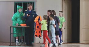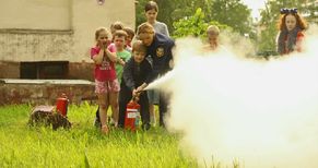Например, школьники примерили на себя роль спасателей – преодолевали дистанцию с надетым спасательным жилетом, бросали конец Александрова, чтобы вытащить из воды условно пострадавшего, знакомились с огнетушителем и пробовали сами локализовать условное возгорание.