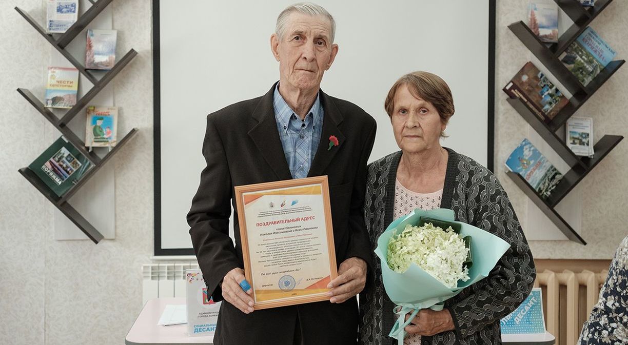 Кроме того, на мероприятии чествовали супружеские пары, которые в июле отметили 55-летие со дня бракосочетания. Поздравления с изумрудной свадьбой принимали Вера Павловна и Николай Изосимович Нозиковы, а также Владимир Аркадьевич и Надежда Александровна Докшины. Супруги делились историями своей семьи, подчеркивали, что важно уметь слушать и слышать друг друга, находить компромиссы в непростых житейских ситуациях. Без любви, доверия и взаимного уважения семью не построишь.