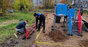 – Основная часть работ по обустройству данной площадки уже выполнена. Произведена сборка всего оборудования. В комплект входит игровой комплекс, качели-гнездо, качалка-балансир, песочница, а также скамейка и урна. Осталось закрепить все навесные элементы, забетонировать конструкции и произвести отсыпку территории, – прокомментировал прораб компании-подрядчика Михаил Жёлудев.