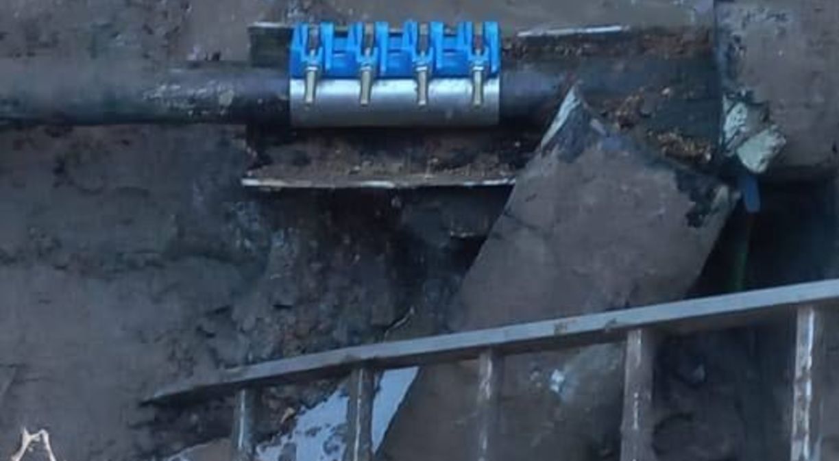 В связи с тем, что прорыв оказался с краю гильзы, удалось установить хомут, не меня участок трубопровода.