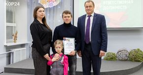 На празднике лучшего папу Коряжмы ждал еще один приятный сюрприз: глава города Андрей Ткач вручил Юрию Горулеву нагрудный знак «За сохранение семейных ценностей». Это общественная награда Совета отцов Архангельской области.