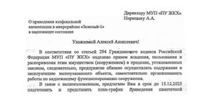 В социальных сетях опубликовано новое письмо от управления муниципального хозяйства и градостроительства администрации Коряжмы в адрес руководства муниципального предприятия «ПУ ЖКХ». На этот раз чиновники указывают МУПу на обязанность ремонтировать хозфекалку.