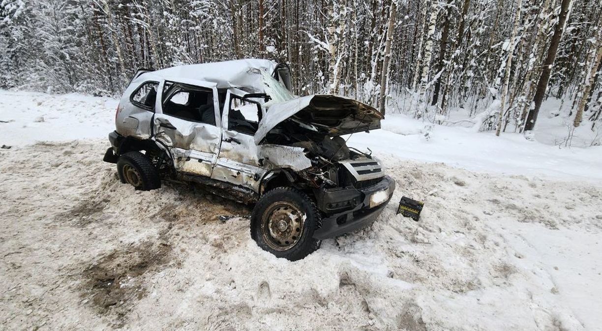 Водитель автомобиля «Шевроле Нива», женщина 1968 года рождения, двигаясь со стороны Котласа, не справилась с управлением, выехала на полосу встречного движения и столкнулась с грузовиком «КАМАЗ».