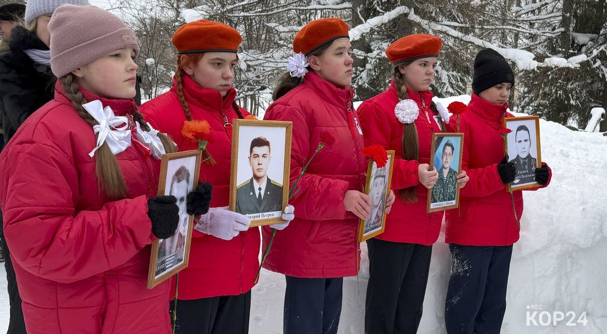 В ходе церемонии участники вспомнили ключевую дату — 15 февраля 1989 года, когда завершился вывод советских войск из Афганистана. В девятилетней войне участвовали 52 коряжемца, пятеро из них — Николай Финатов, Алексей Воскресенский, Виктор Алышев, Сергей Абабков и Леонид Бровкин — погибли. Почтили память и воинов, не вернувшихся из Чечни: Алексея Ноговицына, Игоря Мазанова, Андрея Карпина, Дмитрия Петрова и Александра Субботина.