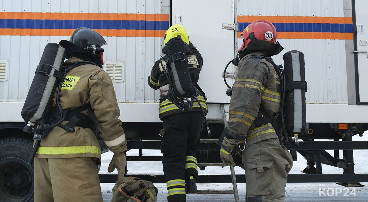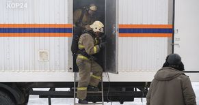 В Коряжме прошли масштабные учения: для тренировки пожарных ПЧ № 33 и № 34 задействовали мобильный передвижной огневой тренировочный комплекс регионального управления МЧС России по Архангельской области — «Лава».
