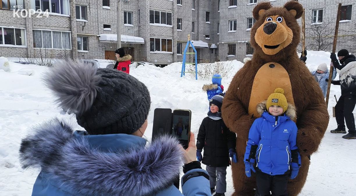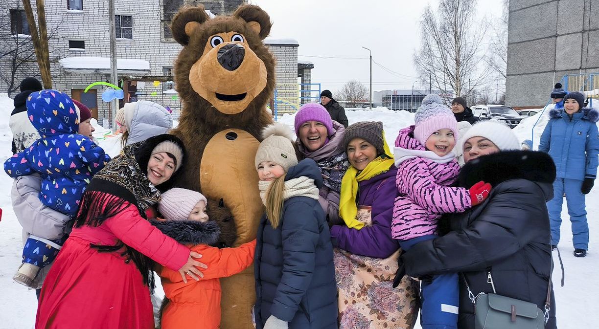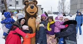 Часовая программа была насыщена развлечениями: взрослые вместе с детьми участвовали в народных забавах, водили хороводы и, конечно же, угощались вкусными блинами (их пекли в двух семьях с шести утра!). Согревались в подвижных играх и ароматным чаем из настоящего самовара. Самые смелые попробовали «обуздать» ходули. А под финал праздника во двор прибыл сказочный гость — Мишка. Жители дома с удовольствием поддержали его зажигательный танец, а после выстроились в очередь, чтобы сделать с ним памятное фото.