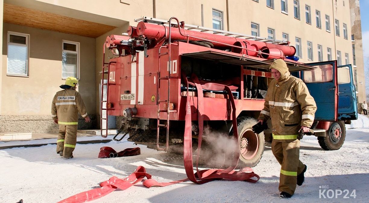 В Коряжме прошли масштабные тактические пожарные учения. Местом действий стало здание администрации города.
