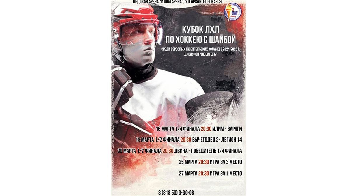 Кстати, в эти дни на «Илим-Арене» проходят финальные матчи Лесной хоккейной лиги среди любительских команд, в которых борьбу за награды ведут пять сборных: из Котласа, Вычегодского, Приводино, Шипицыно и Коряжмы. Они завершатся 27 марта. Болельщики, не пропустите!