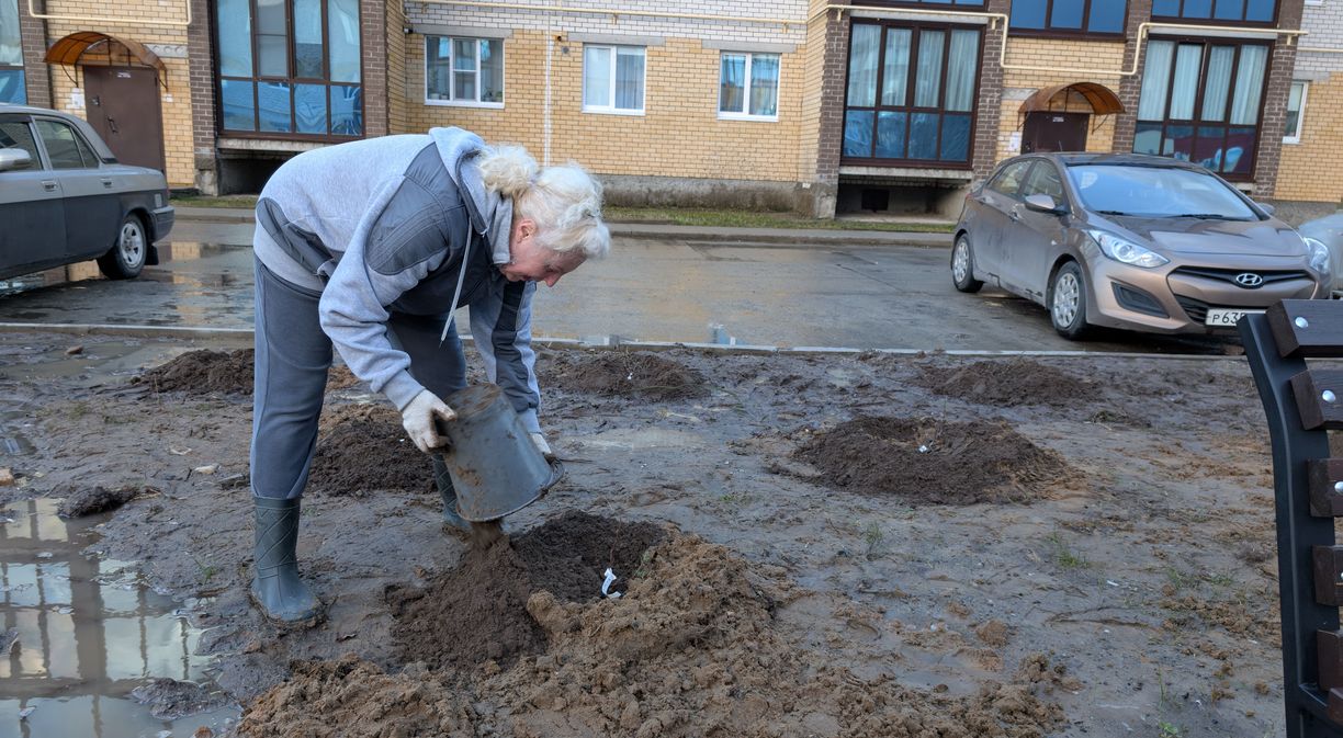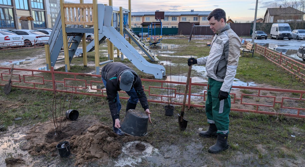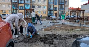 Активными участниками акции по озеленению внутридворовой территории стали сами жители. Во вторник многие отложили домашние дела и вышли на субботник целыми семьями.