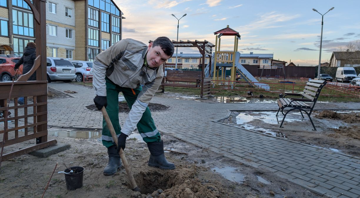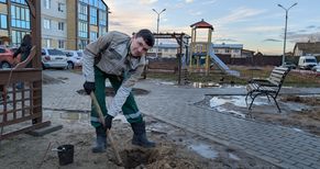 «Я пришел сюда с мамой и своим братом Тимуром, чтобы помочь делать наш мини-парк во дворе. Помогал маме держать куст, пока она садила его», – говорит один из участников субботника Артем Корзунов.
