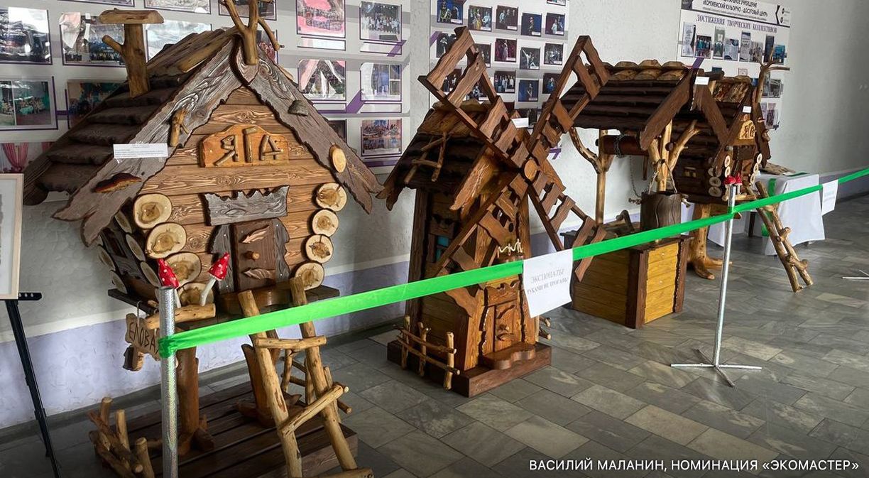 В номинации «Экомастер», где оценивались поделки из природных материалов, на суд жюри были представлены настенные часы, корзинка из сосновых шишек, композиция «Осенний еж». Работы Василия Маланина высоко оценила не только конкурсная комиссия. Его избушки, мельницы и другие шедевры из сосновых коряг стали украшением выставки, оформленной к праздничному вечеру в честь Дня работников леса.