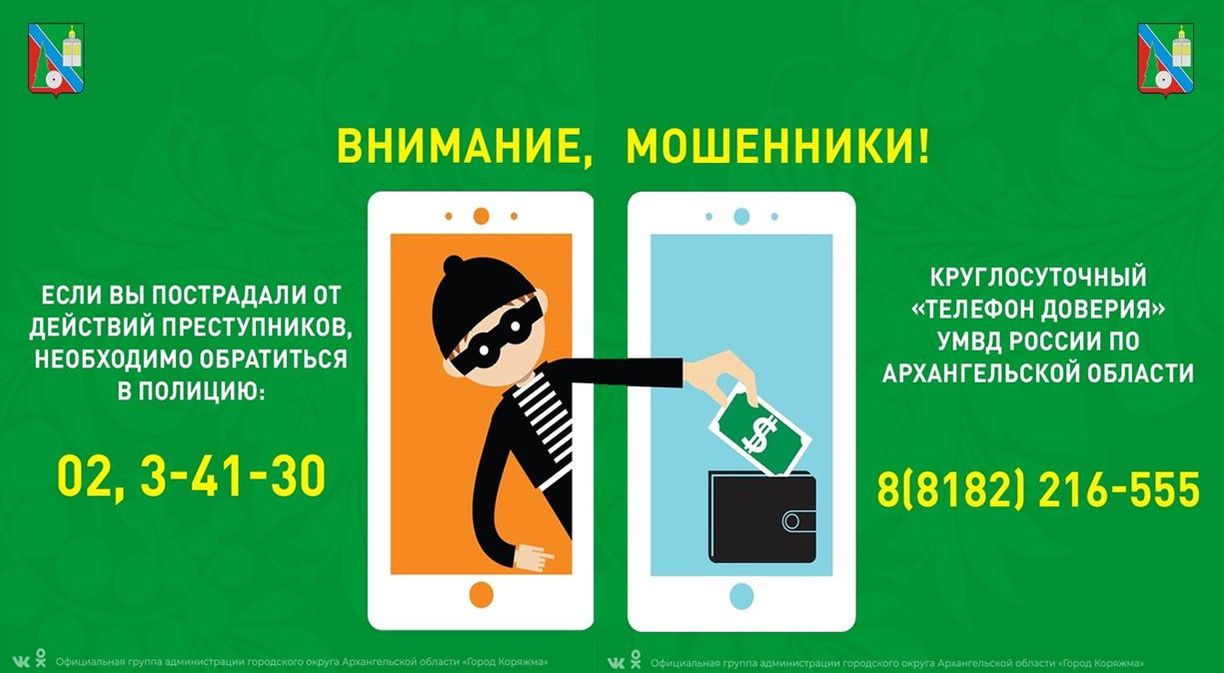Также напоминаем, что в УМВД России по Архангельской области работает круглосуточный «телефон – 8(8182)216-555, позвонив по которому граждане могут сообщить имеющуюся у них информацию о готовящихся или совершенных преступлениях.