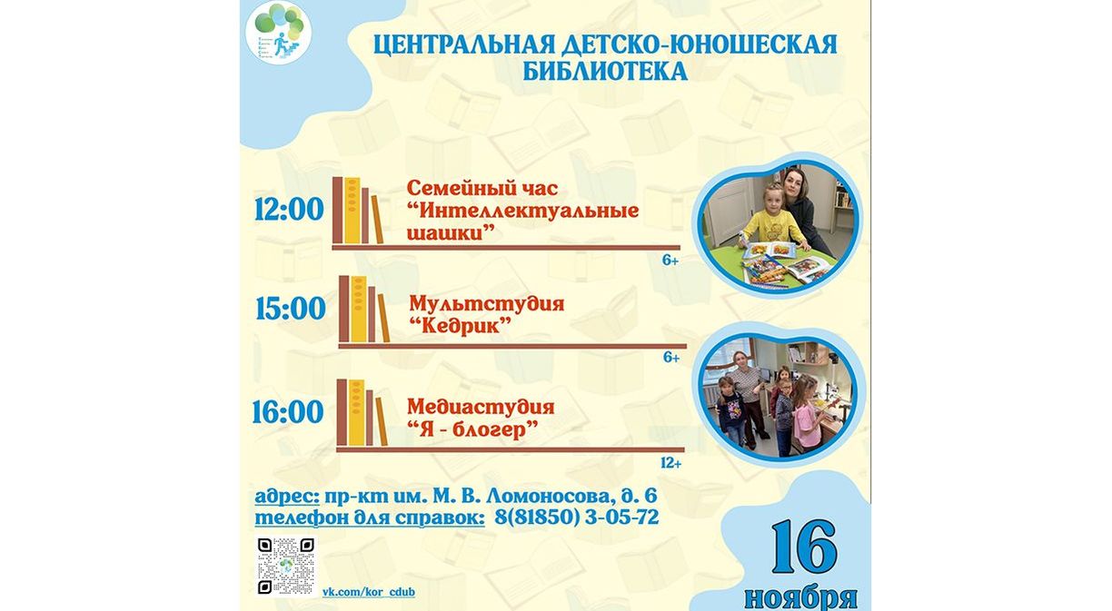 «Нескучные выходные» запланированы в библиотеках Коряжмы. В воскресенье, 16 ноября, посетители центральной детско-юношеской библиотеки на Ломоносова, 6 познакомятся с интеллектуальными шашками, попробуют себя в мультипликации и блогинге. В библиотеке семейного чтения на Дыбцына, 10 состоится мужской квиз в рамках клуба интеллектуальных игр «В.И.Д.». Подробнее о других о мероприятиях – в сообществе «Библиотеки Коряжмы» ВКонтакте.