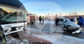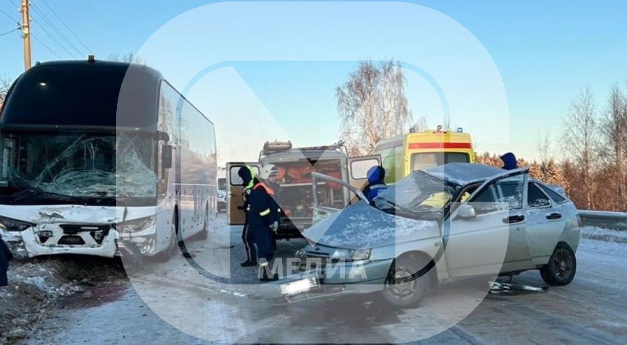 В автомобиле ВАЗ погибла пассажирка 1963 года рождения, сидевшая на переднем сидении. С различными травмами водителя отечественной легковушки доставили в больницу. В автобусе пострадавших нет.